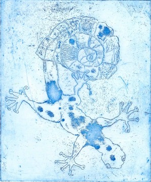 Electro-etching on copper plate. 20 x 16.5 cm. Lines on graphite ink resist.